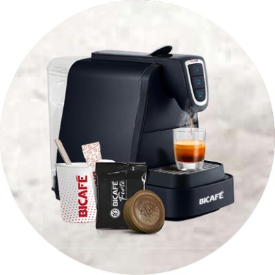 A mix of Ristretto and Gourmet coffee capsules, with intensity 10 and 8 respectively, to which we've added the sweetness of Chocolate capsules and the class of Cappuccino.